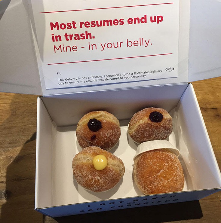 Γράφοντας ένα έξυπνο μήνυμα μέσα που εξηγούσε ότι δεν ήθελε να πεταχτεί, παρέδωσε το… νόστιμο βιογραφικό του σε πάνω από 40 εταιρείες και ήδη έχει κλείσει 10 συνεντεύξεις.