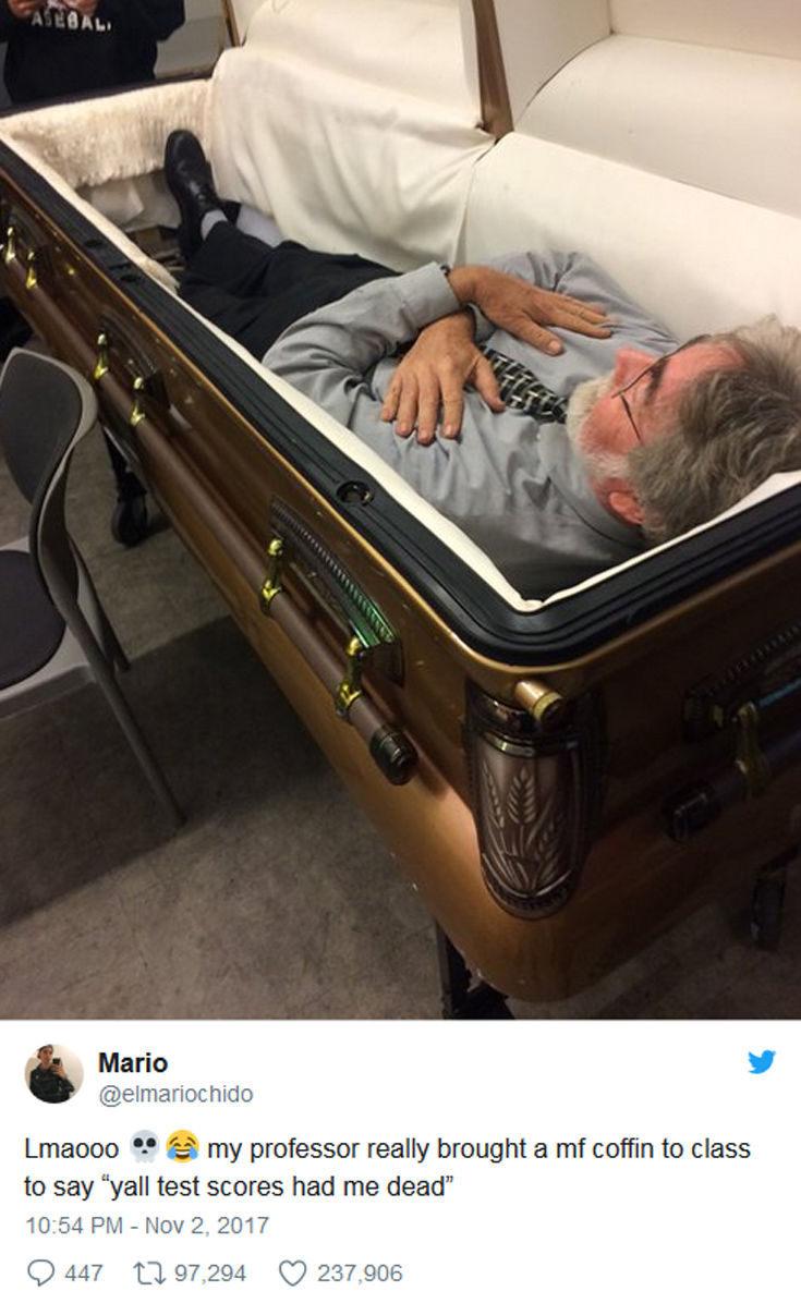 Τι έκανε; Μπήκε μέσα σε ένα φέρετρο και παρίστανε το νεκρό. «Οι βαθμοί σας με πέθαναν», φέρεται να είπε.