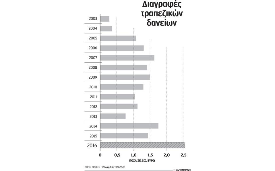 Δάνεια άνω των 2,5 δισ. διέγραψαν το 2016 οι ελληνικές τράπεζες