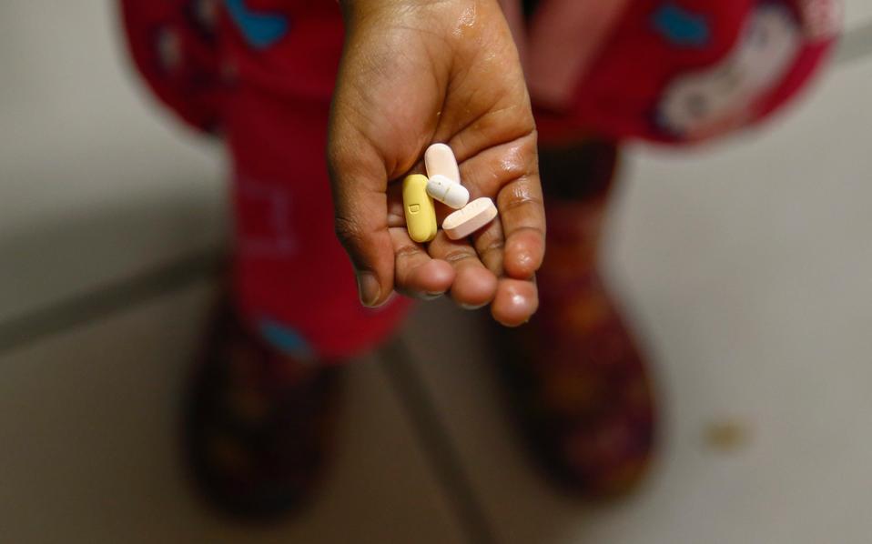 Παιδί που πάσχει από HIV λαμβάνει την καθημερινή δόση αντιρετροϊκών φαρμάκων στο Κέιπ Τάουν.