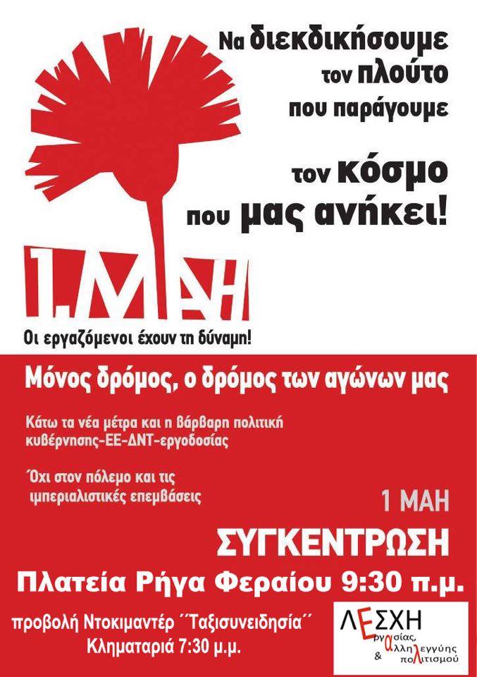 Όλοι/ες την Πρωτομαγιά στην ανεξάρτητη ταξική προσυγκέντρωση στην πλατεία Ρήγα Φεραίου, ώρα 9:30 πμ || Να μη ζήσουμε σα σκλάβοι