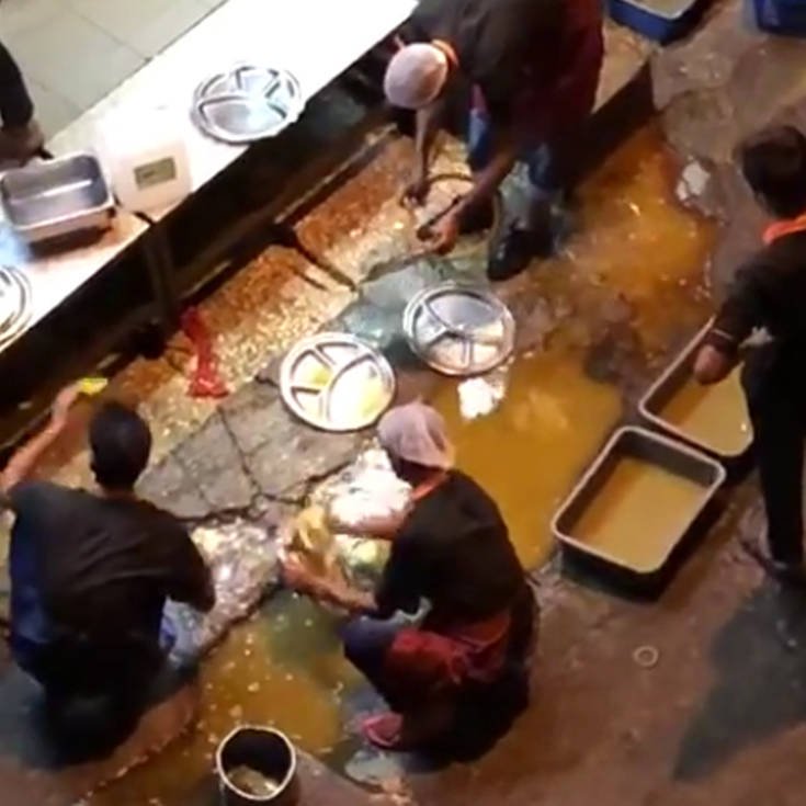 Αυτό συνέβη στο δημοφιλές μάλιστα εστιατόριο Raj’s Banana Leaf της Κουάλα Λουμπούρ, στέλνοντας την υγιεινή περίπατο. Οι υπάλληλοι πλένουν τα πιάτα στο δρομάκι πίσω από την κουζίνα, βουτώντας τα μέσα στον λασκόλακκο, αναγκάζοντας τον δήμαρχο της πόλης να του βάλει λουκέτο.