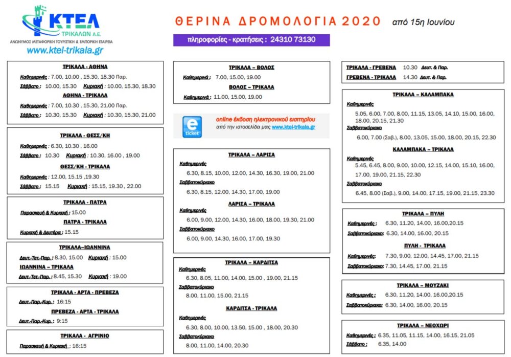 Επιστροφή στην κανονικότητα σταδιακά για το Υπεραστικό ΚΤΕΛ Τρικάλων με τα νέα θερινά δρομολόγια.