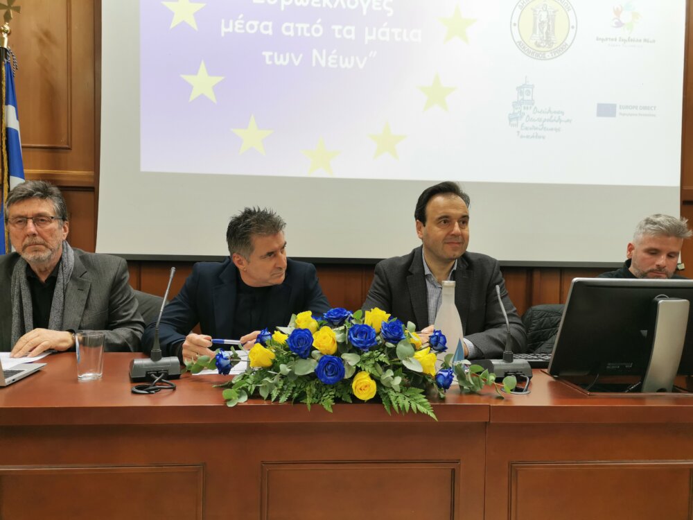 Τα ζητήματα των επερχόμενων ευρωεκλογών και η αναγκαιότητας συμμετοχής των νέων σε αυτές, συζητήθηκαν σε εκδήλωση στην κατάμεστη αίθουσα συνεδριάσεων του Δημοτικού Συμβουλίου Τρικκαίων. Το πρωί του Σαββάτου 27 Ιανουαρίου 2024, νέοι και νέες των Τρικάλων, καθώς και πολίτες, παρακολούθησαν την εκδήλωση που συνδιοργάνωσαν τα Ιδιωτικά Εκπαιδευτήρια «Αθηνά», ο Δήμος Τρικκαίων, το Δημοτικό Συμβούλιο Νέων, η Δ/νση Δευτεροβάθμιας Εκπαίδευσης Τρικάλων και το Europe Direct Θεσσαλίας. Το θέμα της εκδήλωσης σαφές: «Ο Δρόμος προς τις Ευρωεκλογές μέσα από τα μάτια των νέων».Κύριοι ομιλητές, ο Υπουργός Ψηφιακής Διακυβέρνησης Δημήτρης Παπαστεργίου, ο Ευρωβουλευτής Θεόδωρος Ζαγοράκης, και ο επικεφαλής Europe Direct Θεσσαλίας κ. Βασίλης Χατζηκαμαγιάννης.