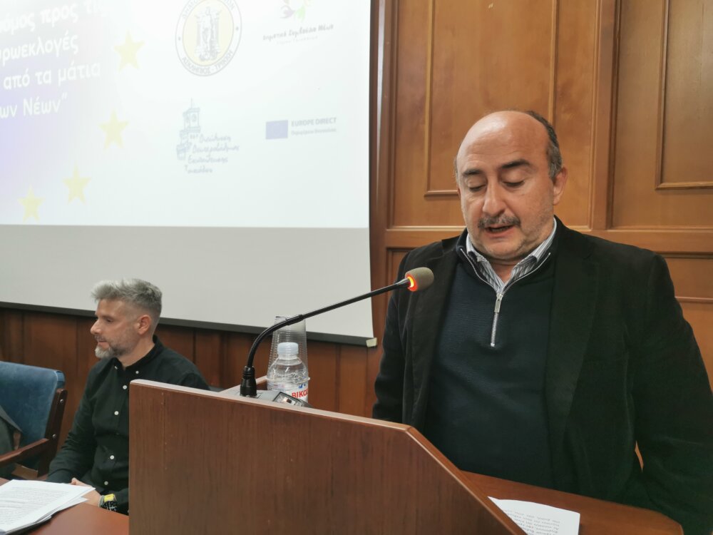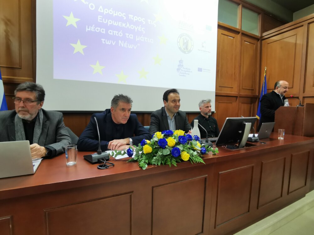 Ο κ. Βασίλης Χατζηκαμαγιάννης, ως επικεφαλής της Europe Direct Θεσσαλίας, εξήγησε ότι ο οργανισμός είναι Κέντρο Ευρωπαϊκής Πληροφόρησης που λειτουργεί σαν τα «μάτια και τα αφτιά» της ΕΕ. Εθεσε βασικά στοιχεία για τα κυρίως όργανα της ΕΕ (Ευρωπαϊκή Επιτροπή και Ευρωπαϊκό Κοινοβούλιο), ενώ τόνισε ότι οι ευρωεκλογές έχουν ως αναγκαιότητα τη διάχυση των καλών πρακτικών στην Ε.Ε. Επεσήμανε ότι είναι σημαντική η ψήφος των νέων γιατί συνδιαμορφώνουν το μέλλον, ασκούν το δημοκρατικό δικαίωμα για συμμετοχή στη λήψη αποφάσεων της ΕΕ για την επόμενη πενταετία, και αξιοποιούν την ψήφο για αντιμετώπιση παγκόσμιων εξελίξεων από κοινού ως ενιαία ΕΕ. Τόνισε, δε, ότι το διακύβευμα είναι, να προωθηθεί στους πολίτες το μήνυμα ότι το Ευρωκοινοβούλιο διαδραματίζει κομβικό ρόλο το σύστημα λήψης αποοφάσεων της Ε.Ε.