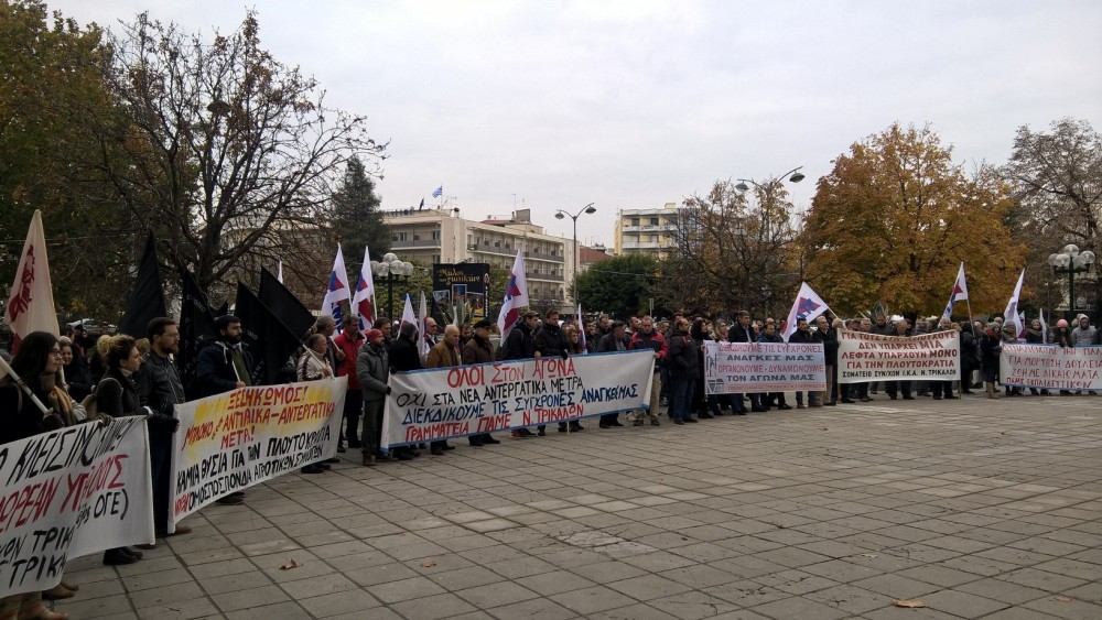 Οι διοικήσεις των συνδικαλιστικών οργανώσεων Ν.Τρικαλων που υπογράφουμε το παρών κείμενο, συμφωνούμε να συμβάλουμε στην ανάπτυξη ενός μαχητικού εργατικού-λαικού τείχους αντίστασης, για την κάλυψη των απωλειών που είχαμε σε εισόδημα και δικαιώματα, για να μην περάσουν οι νέες απαιτήσεις των επιχειρηματικών ομίλων που προστίθενται στα προηγούμενα βάρβαρα μέτρα. Δεν θα ζήσουμε με την άγρια εκμετάλλευση, την ανεργία, τη φτώχεια και τους πολέμους.