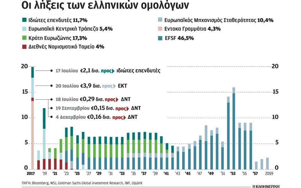 Την ίδια ώρα, όσοι προτάσσουν την προοπτική συμπερίληψης των ελληνικών ομολόγων στο πρόγραμμα ποσοτικής χαλάρωσης της ΕΚΤ ενδέχεται να αποδειχθούν υπερβολικά αισιόδοξοι. Ο οικονομολόγος της Goldman Sachs, Χου Πιλ, πληροφόρησε τους πελάτες του οίκου του πως όχι μόνον δεν περιμένει ουσιαστική απόφαση για το ελληνικό χρέος πριν από τις γερμανικές εκλογές αλλά και πως χωρίς αυτήν η ΕΚΤ δεν θα ξεκινήσει να αγοράζει ελληνικά ομόλογα. Κάτι που κατά την κρίση του σημαίνει πως αν όλα εξελιχθούν ομαλά στη διαπραγμάτευση για το ελληνικό χρέος, η κεντρική τράπεζα θα αρχίσει να αγοράζει ελληνικά ομόλογα την ίδια ώρα που θα ξεκινά την αποκλιμάκωση και ολοκλήρωση του προγράμματος ποσοτικής χαλάρωσης. Δηλαδή τα όποια οφέλη για τα ελληνικά ομόλογα αλλά και τις τράπεζες ενδέχεται να αποδειχθούν περιορισμένα.
