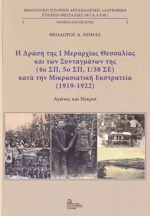 Σε μια νέα πολύ σημαντική ιστορική έκδοση για την Θεσσαλία προέβη η Φιλολογική, Ιστορική, Αρχαιολογική, Λαογραφική Εταιρεία Θεσσαλίας (Φ.Ι.Α.Λ.Ε.Θ.) σε συνεργασία με τις Εκδόσεις Κ. & Μ. Αντ. Σταμούλη της Θεσσαλονίκης. Η εν λόγω έκδοση των 317 σελίδων περιέχει αναλυτικά την Δράση της Ι Μεραρχίας Θεσσαλίας και των Συνταγμάτων της (4ο ΣΠ Λαρίσης, 5ο ΣΠ Τρικάλων, 1/38 ΣΕ Καρδίτσης) κατά την Μικρασιατική Εκστρατεία (1919-1922), καθώς και τα ονόματα των Θεσσαλών αξιωματικών και οπλιτών (3.600) που εφονεύθησαν ή απεβίωσαν κατά την διάρκειά της. Το βιβλίο αυτό εντάσσεται στη σειρά των αυτοτελών εκδόσεων της Φ.Ι.Α.Λ.Ε.Θ. «Κείμενα και Μελέτες», αρ. 2, και εκδίδεται φέτος που συμπληρώθηκαν εκατό (100) χρόνια από το άδοξο τέλος της Μικρασιατικής Εκστρατείας.