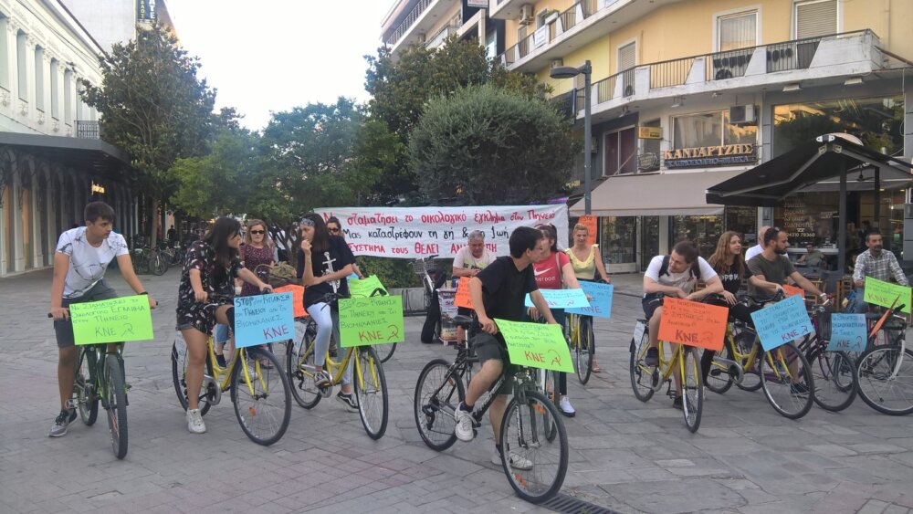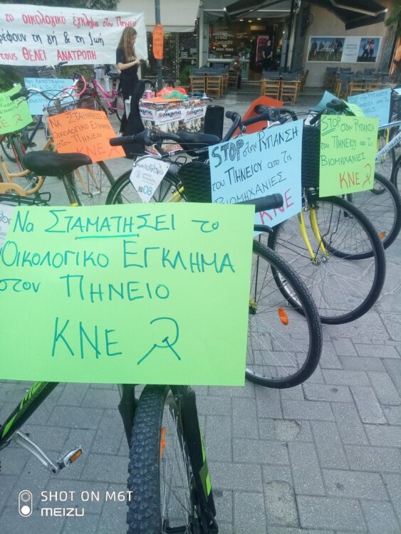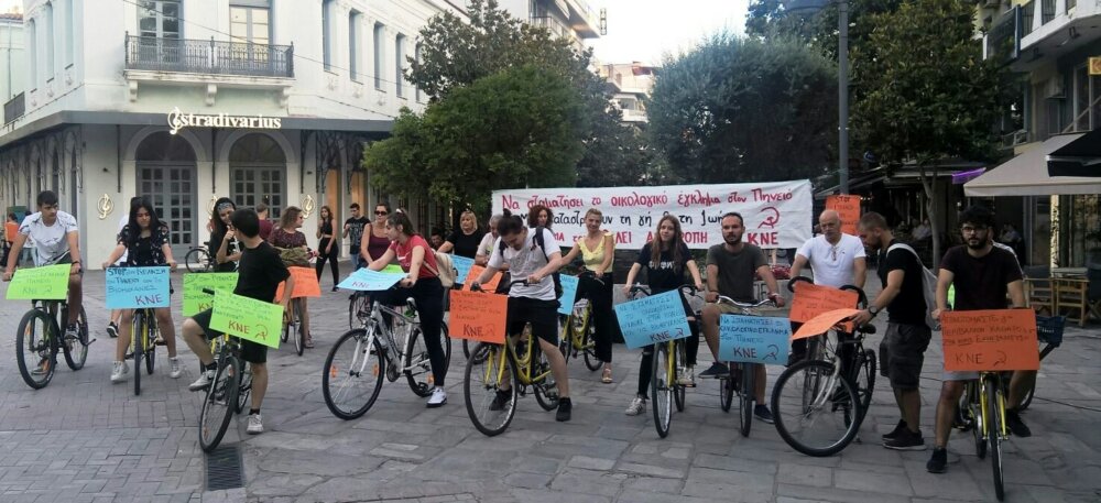 Η ποδηλατοδρομία ενάντια στη ρύπανση του Πηνειού από τις βιομηχανίες της περιοχής  . Η ρύπανση στον Πηνειό ποταμό αποτελεί ένα τεράστιο οικολογικό έγκλημα, που συντελείται εδώ και πάρα πολλά χρόνια, με την ευθύνη να βαρύνει -κυρίως- κάποιες βιομηχανίες οι οποίες με τα λύματά τους καταστρέφουν κάθε πηγή ζωής σ’ αυτόν και θέτουν σε κίνδυνο την υγεία του λαού, πατώντας πάνω στην προκλητική αδιαφορία των εκάστοτε κυβερνήσεων και της Τοπικής Διοίκησης.Ένα ακόμα δείγμα αυτής της θανατηφόρας ρύπανσης αποτελεί, τις τελευταίες μέρες, το κυριολεκτικό “άσπρισμα” των νερών του ποταμού και η εμφάνιση χιλιάδων ψαριών που ξεβράστηκαν νεκρά στην επιφάνεια. Μέσα από τη συζήτηση αναδείχτηκε ότι το φαινόμενο θα γιγαντωθεί , αφού με το νέο περιβαλλοντοκτόνο νόμο, που πρόσφατα έφερε και ψήφισε η κυβέρνηση της ΝΔ στη Βουλή, δίνει γην και ύδωρ στα επιχειρηματικά συμφέροντα για να κερδοφορήσουν, καταργώντας τα όποια εμπόδια υπήρχαν μέχρι σήμερα στις άδειες επιχειρηματικής δράσης γύρω από τα αιολικά πάρκα, την διαχείριση απορριμμάτων και αποβλήτων, με αποτέλεσμα να εντείνονται τα φαινόμενα των νερών του Πηνειού να ξεβράζουν χιλιάδες νεκρά ψάρια, χωρίς ποτέ να ληφθούν ουσιαστικά μέτρα προστασίας από τους αρμοδίους.