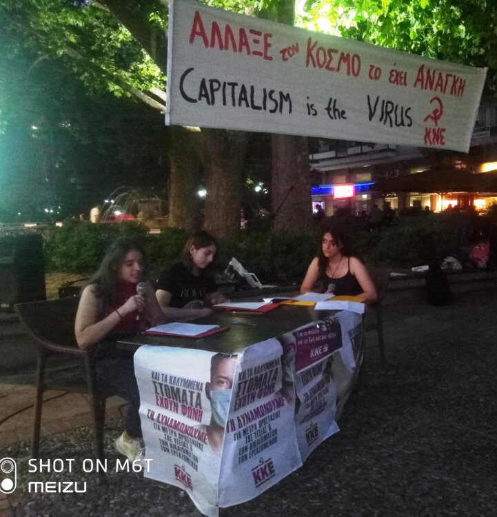 Με έμπνευση και ορμή από  τους στίχους του Μπέρτολντ Μπρεχτ «Άλλαξε τον κόσμο, το ‘χει ανάγκη!» η ΚΝΕ έστησε το «μαθητικό στέκι» στον πεζόδομο της Ασκληπιού , στην πλατεία Ρήγα Φεραίου. Πολλοί μαθητές και νέοι της πόλης μοίρασαν τους προβληματισμούς τους τη δίψα  για συζήτηση, την δίψα  για πολιτιστική δημιουργία, για διασκέδαση. Συζήτησαν  από πρώτο χέρι για το τι παλεύει η ΚΝΕ. Ένωσαν   τις φωνές τους  γιατί οι ανάγκες, η ευτυχία των νέων όλου του κόσμου δεν χωράνε στο σημερινό άδικο σύστημα που μετατρέπει το σχολείο σε πανάκριβο εξεταστικό κέντρο, που καταστρέφει το περιβάλλον, που μας αφήνει εκτεθειμένους σε πανδημίες, που γεννά φτώχεια, πολέμους και φασισμό.