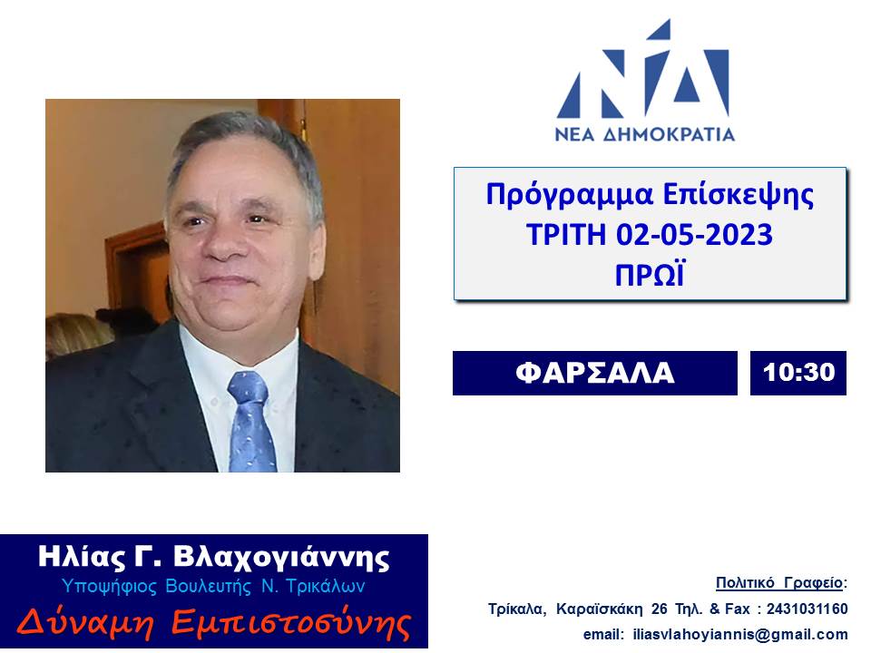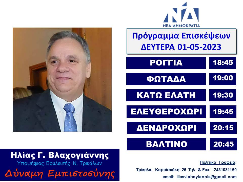 Πρόγραμμα επισκέψεων Ηλ.Βλαχογιάννη για αύριο Δευτέρα και Τρίτη πρωί
