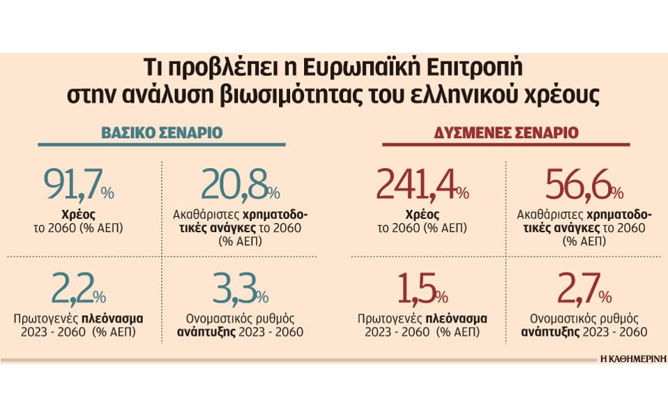 «Υπάρχει αβεβαιότητα σχετικά με την ικανότητα της Ελλάδας να διατηρήσει υψηλά πρωτογενή πλεονάσματα για αρκετές δεκαετίες», αναφέρει το έγγραφο της Κομισιόν, προσθέτοντας ότι υπάρχουν επιπλέον κίνδυνοι για τον ρυθμό ανάπτυξης, που σχετίζονται με τη γήρανση του πληθυσμού.