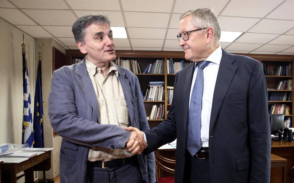 Ο επικεφαλής του ESM Κλάους Ρέγκλινγκ με τον υπ. Οικονομικών Ευκλείδη Τσακαλώτο. «Αν προχωρήσουν οι μεταρρυθμίσεις, τότε η έξοδος στις αγορές μπορεί να συμβεί αργότερα φέτος ή στις αρχές του 2018», είπε ο κ. Ρέγκλινγκ.