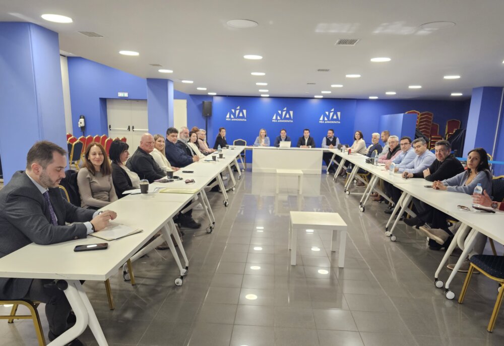 Στα πλαίσια των συνεχών ενημερωτικών επαφών εν όψει κατάρτισης του νέου Κυβερνητικού Προγράμματος, η αρμόδια Γραμματεία της Νέας Δημοκρατίας υπό τον Γραμματέα Χάρη Θεοχάρη και τους Αν. Γραμματείς Γιώργο Βλαχογιάννη, Αντωνία Δήμου και Σταύρο Βουρλούμη, συναντήθηκε στα γραφεία του κόμματος στην οδό Πειραιώς με φορείς και σωματεία των κλάδων Υγείας.