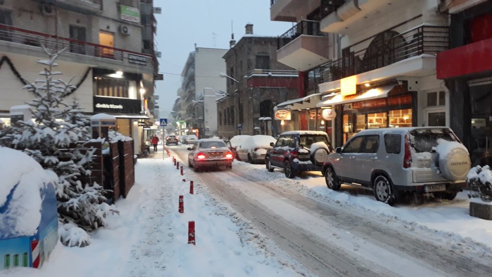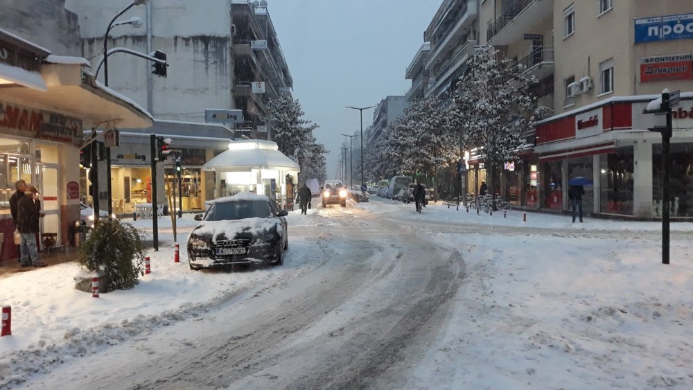 Έντονη είναι η χιονόπτωση μέχρι τώρα στα Τρίκαλα, με το οδόστρωμα ακόμη και κεντρικών οδών όπως η Ασκληπιού να έχει καλυφθεί από χιόνι, με αποτέλεσμα τα οχήματα να κινούνται με σχεδόν μηδενικές ταχύτητες.