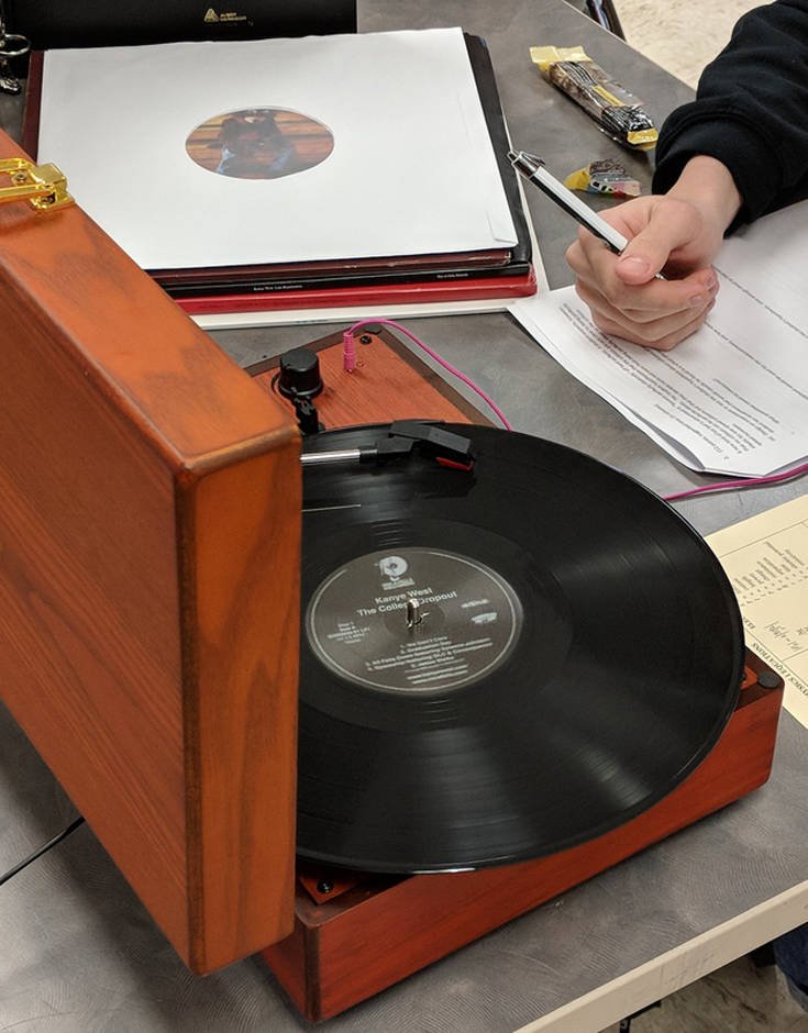 This student brought in a record player and is bumping Kanye in his headphones right now… pic.twitter.com/p57iMIal7D