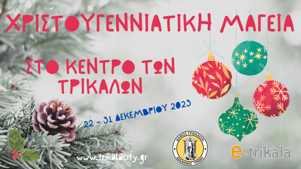 Με παρελάσεις και γιορτές, με καλλιτεχνικές δράσεις και πλήθος εκδηλώσεων, ο Δήμος Τρικκαίων και ο Μύλος των Ξωτικών προσφέρουν τη χριστουγεννιάτικη μαγεία στο κέντρο των Τρικάλων. Ηρωες σε ξυλοπόδαρα, μασκότ, magicshow, σαξόφωνα, τύμπανα…. θα ξεσηκώσουν μικρούς και μεγάλους και θα σκορπίσουν χαμόγελα και χαρά σε όλους τους επισκέπτες