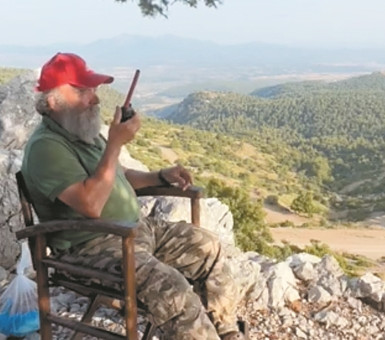 «Το 1994 πρωτολειτούργησε το φυλάκιο και πήγα ως πυροφύλακας. Απέκτησα τεράστια εμπειρία. Το κεφάλι μου είναι σαν χάρτης της Κεντρικής Εύβοιας. Αποφάσισα να πάω πυροφύλακας εθελοντικά μήπως και περισώσουμε κάτι σε αυτόν τον τόπο. Τώρα δέκα μέρες είμαι πάνω συνεχώς. Μας έχουν βάλει στόχο. Εγώ έχω ασύρματο, έχω κιάλια, είμαι οργανωμένος. Η πρώτη μου κίνηση φέτος ήταν αυτή που έδωσα πολύ σύντομα τη φωτιά στο Κοντοδεσπότι μέσω του ασυρμάτου στην Πυροσβεστική στη Χαλκίδα. Ενημέρωσα αμέσως. Και έτσι τη μαζέψαμε αμέσως. Μέχρι και τον Οκτώβριο είναι επικίνδυνα, οπότε θα είμαστε εδώ. Τα βράδια μαζεύονται πέντε-έξι άτομα. Το πρωί είμαι εγώ μέχρι και το απόγευμα αργά».