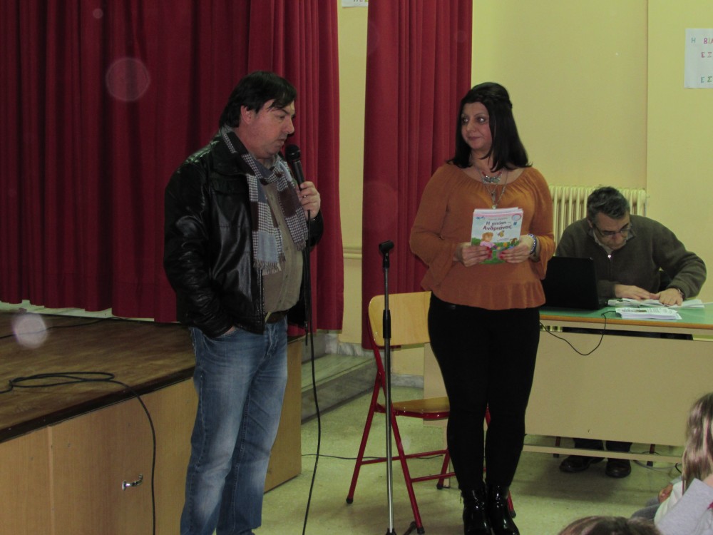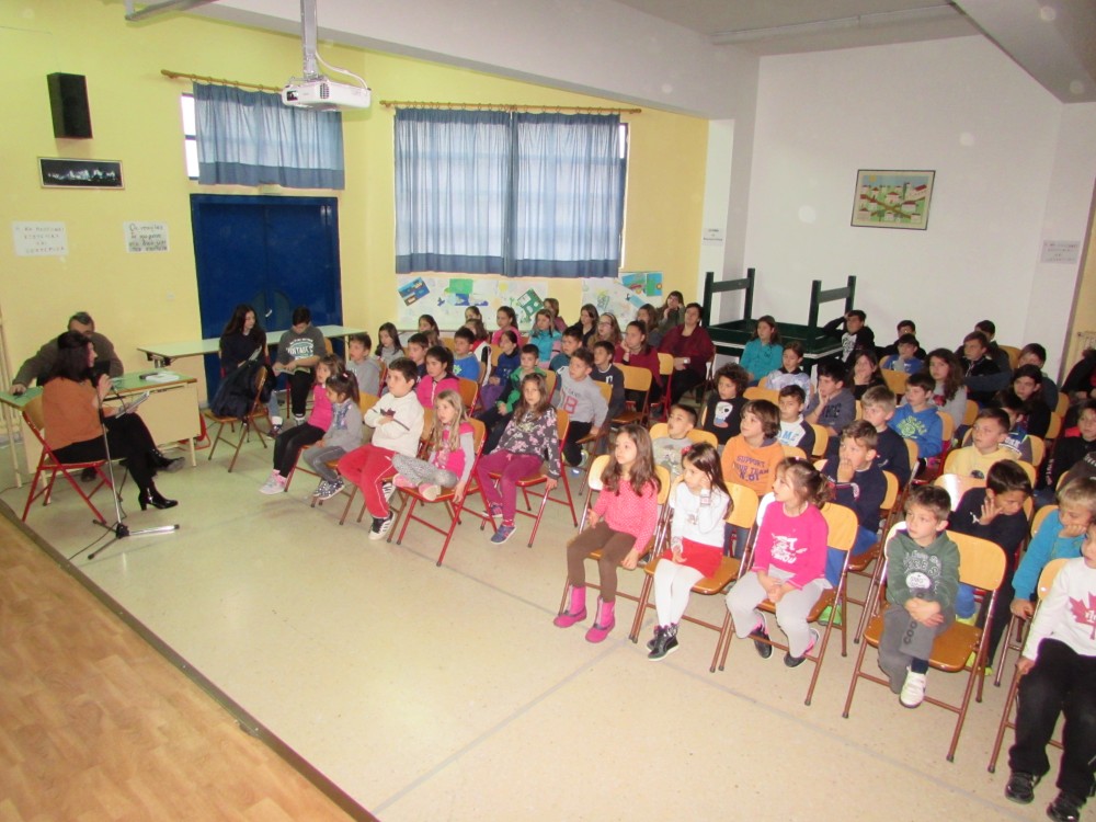 Η κυρία Χαρμπέα Ιωάννα ευχαριστεί θερμά το διευθυντή του σχολείου κ. Νούλα Δημήτριο, τους δασκάλους, τα παιδιά που συμμετείχαν στην αφήγηση καθώς και ολόκληρο το σχολείο για την τιμή που της έκαναν να παρουσιάσει το διδακτικό παραμύθι η απόχη της Ανδριάνας.