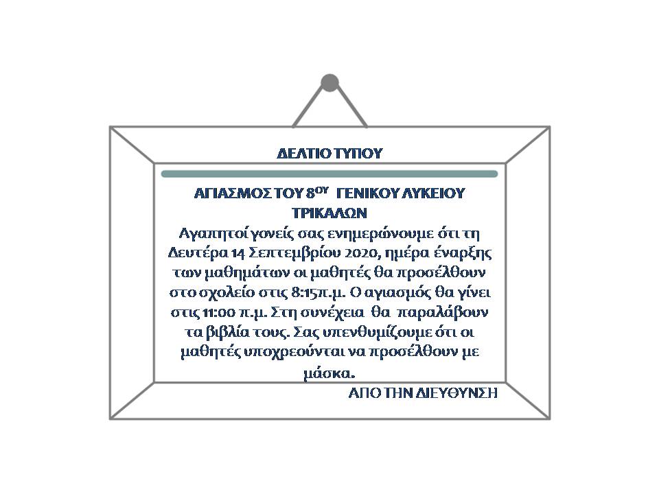 Αγιασμός 8ου Γενικού Λυκείου Τρικάλων