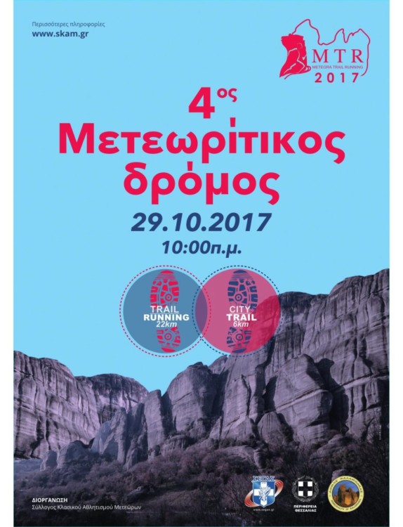 Ο Σύλλογος Κλασσικού Αθλητισμού Μετεώρων (ΣΚΑΜ),, υπό την αιγίδα του ΣΕΓΑΣ, σε συνεργασία με το Δήμο Καλαμπάκας και την Περιφέρειας Θεσσαλίας, διεξάγουν την Κυριακή 29 Οκτωβρίου 2017 τον 4ο Μετεωρίτικο Δρόμο.