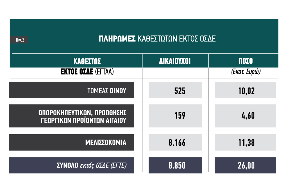 (**)Σηµειώνεται ότι ειδικά για την ενίσχυση Αιγοπρόβειου, αριθµός 34.617 αιτήσεων ποσού 10 εκατ. ευρώ περίπου, εκτιµάται ότι θα πληρωθούν εντός Νοεµβρίου 2025, καθώς απαιτείται περαιτέρω διασταύρωση της παραγωγής γάλακτος σε σχέση µε τα στοιχεία του myDATA.
