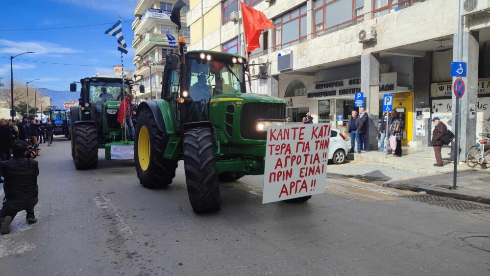 Οι αγρότες με τα τρακτέρ τους από περιοχές που έχουν πλημμυρίσει έχουν κατακλύσει την πόλη, συναντήθηκαν με την αντιπεριφερειάρχη Χρύσα Ντιντή, στην οποία υπέβαλαν υπόμνημα με τα αιτήματά τους.