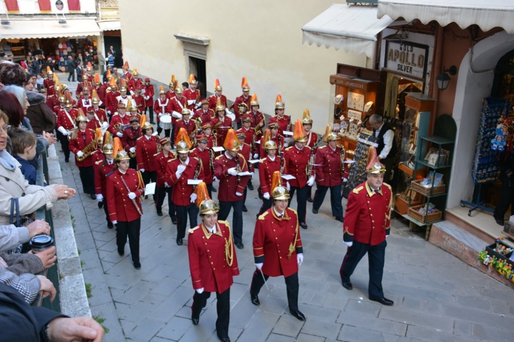 Μετά την ολοκλήρωση της λιτανείας, που σηματοδοτεί την επίσημη έναρξη της πασχαλινής περιόδου, οι τρεις μεγαλύτερες μπάντες των Φιλαρμονικών του νησιού, η «Παλαιά Φιλαρμονική», με έτος ίδρυσης το 1840, η «Μάντζαρος» και η «Καποδίστριας», ενωμένες σε ενιαίο μουσικό σώμα 600 μουσικών, παρέλασαν στα στενά της παλαιάς πόλης προβάλλοντας το μήνυμα «η μουσική ενώνει».