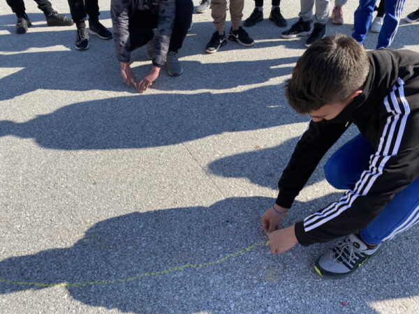 Γυμνάσιο Τρικάλων. Οι μαθητές, χρησιμοποιώντας σπάγκο, μετροταινία και