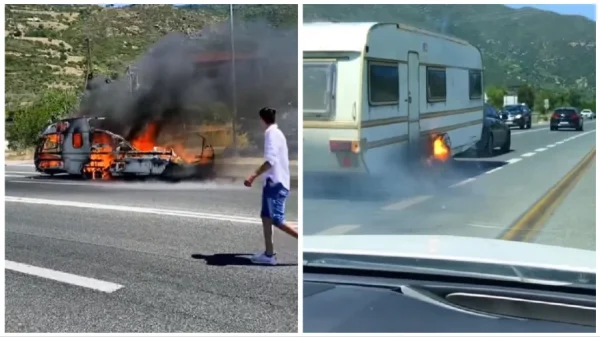 Τελικά σταμάτησε λίγο αργότερα απέναντι από ένα πρατήριο βενζίνης και το μόνο που κατάφερε ήταν να αποσυνδέσει το αυτοκίνητό του με το τροχόσπιτο το οποίο κάηκε ολοσχερώς.