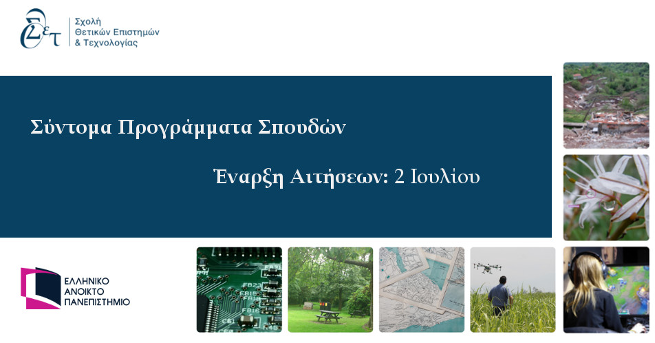 Τον Οκτώβριο του 2018, πρόκειται να ξεκινήσουν τα 8 Σύντομα Προγράμματα Σπουδών (ΣΠΣ) της Σ.Θ.Ε.Τ.,τα οποία θα απευθύνονται σε επιστήμονες που επιθυμούν να τα παρακολουθήσουν σε σύγχρονα επιστημονικά αντικείμενα που καλύπτει η Σχολή. Τα Προγράμματα έχουν τη μορφή e-learningκαι θα διαρκούν από 10 εβδομάδες έως 32 εβδομάδες. Επιπλέον, τα 8 ΣΠΣ της Σ.Θ.Ε.Τ αντιστοιχούν σε 5 έως 20 ECTSκαι εντάσσονται στο 5ο, 6ο& 7ο του Ευρωπαϊκού Πλαισίου Προσόντων (EQF), τα οποία οδηγούν σε Πιστοποιητικό Προπτυχιακής & Μεταπτυχιακής Επιμόρφωσης του Ε.Α.Π.