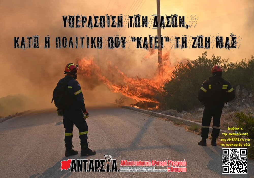 Είναι η ώρα της συλλογικής και οργανωμένης διεκδίκησης και του αγώνα για να στηριχτεί η προσπάθεια να σβήσει η φωτιά, να βοηθηθούν οι πυρόπληκτοι, να σωθεί ό,τι είναι δυνατό από δάση, σπίτια, καλλιέργειες και υποδομές.