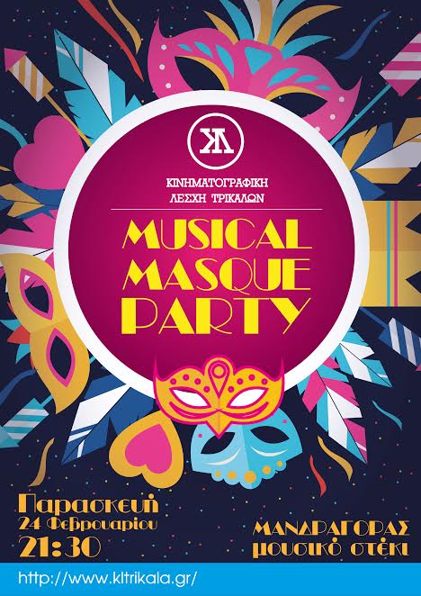 Τα κοστούμια ετοιμάζονται, η μουσική παίζει και οι χορευτικές φιγούρες εναλλάσσονται! Το βράδυ της Παρασκευής, το μεγαλύτερο αποκριάτικο πάρτι των Τρικάλων, δίνει τον τόνο του κεφιού στην Αποκριά! Η Κινηματογραφική Λέσχη Τρικάλων διοργανώνει ακόμη ένα θεματικό πάρτι, ακόμη μια φαντασμαγορική βραδιά, ακόμη μια αξέχαστη νύχτα κεφιού.