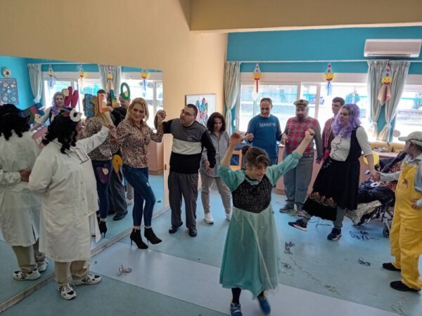 Με το αποκριάτικο κλίμα και με στολές, με περισσότερο κέφι και χορό, οι φιλοξενούμενοι/ες στο ΚΔΑΠ ΜΕΑ «ΗΦΑΙΣΤΟΣ» του Δ. Τρικκαίων γιόρτασαν τη φετινή Αποκριά,. Σε γιορτή που με τη συνδρομή του προσωπικού έστησε η α΄ βάρδια την Παρασκευή 15 Μαρτίου 2024, ακούστηκαν και χορεύτηκαν τραγούδια της Αποκριάς, με πολλή αγάπη από όλους και όλες. Κορωνίδα της γιορτής, η παραδοσιακή «χάσκα», που έκανε άπαντες να γελούν και να διασκεδάζουν. Καλή Αποκριά!