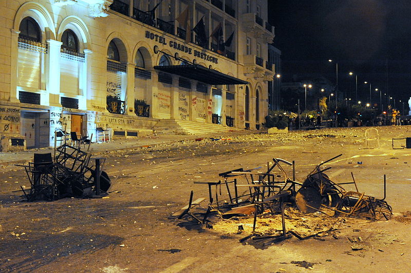 Φωτ.  2. Ετος 2011. Τα αποτελέσματα των ‘’αγανακτισμένων ‘’ στους δρόμους της Αθηνας.  Φωτογραφία μπροστά στο ξενοδοχείο ‘’Μ. Βρετανία’’ λίγο πιο κάτω από την Βουλή.