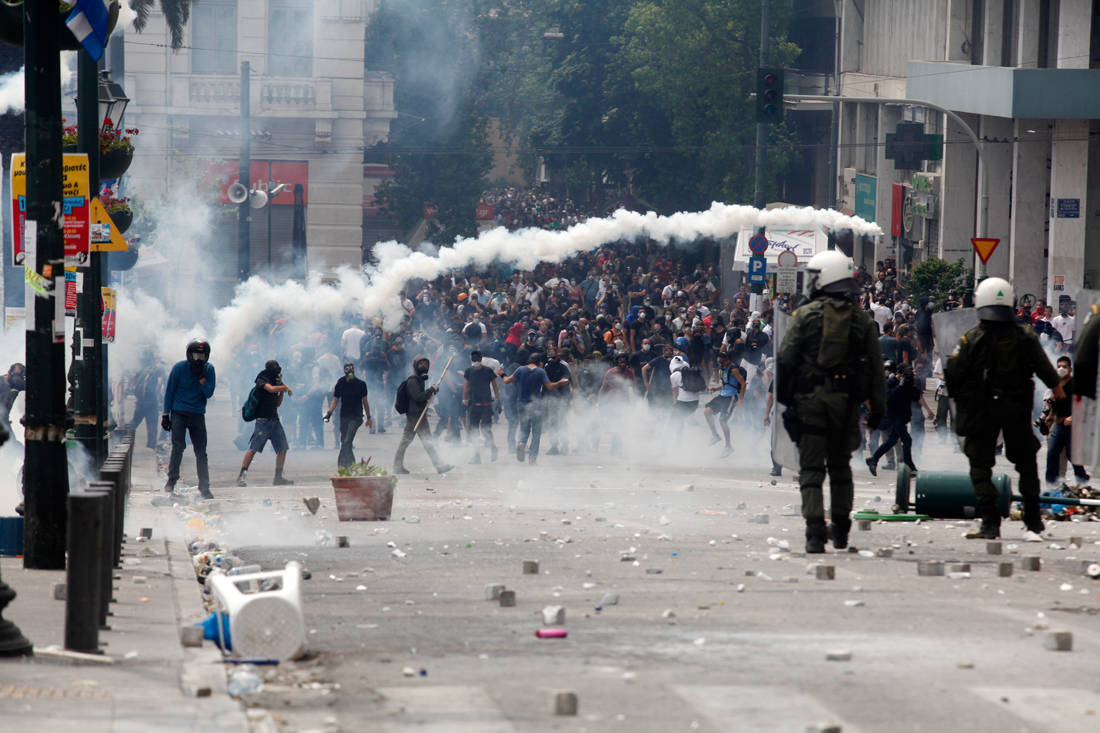 Φωτ. 4. Πολεμικά γεγονότα μέσα στην πρωτεύουσα στην εποχή της οικονομικής κρίσης. Ωχριούν τα ανάλογα γεγονότα στο Καπιτώλιο των ΗΠΑ.  Τα διχαστικά συνθήματα του είδους ‘’ Να καεί να καεί, η πουτ..να η βουλή’’  ‘’Η αυτοί η εμείς΄΄  ‘’Η τους τελειώνουμε η μας τελειώνουν’’ ήταν πολύ της μόδας.