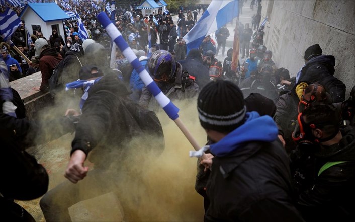 Φωτ. 5. Σκηνή από το ίδιο έργο, μπροστά στον Αγνωστο Στρατιώτη. ‘’Διαμαρτυρία από νεομακεδονομάχους’’ που  διαφωνούσαν για την συμφωνία των Πρεσπών, από την τότε Κυβέρνηση.