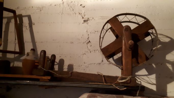και το αδράχτι που περίστρεφε και έκλωθε εκατοντάδες μέτρα νήματος. Στο δημοτικό