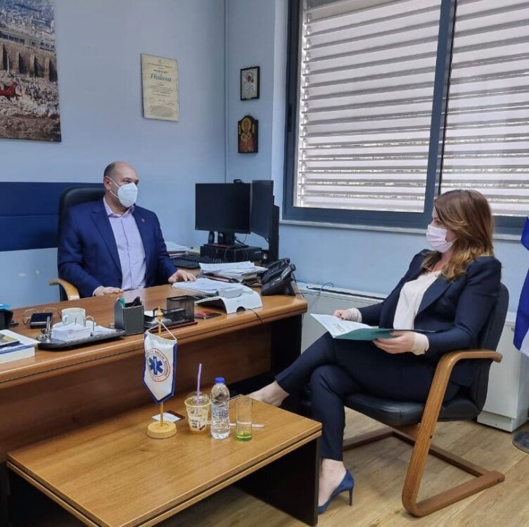 Με δύο βασικά θέματα στην ατζέντα της, επισκέφθηκε η Τρικαλινή Βουλευτής Κατερίνα Παπακώστα – Παλιούρα, τον Διοικητή του ΕΚΑΒ κ. Παπαευσταθίου.