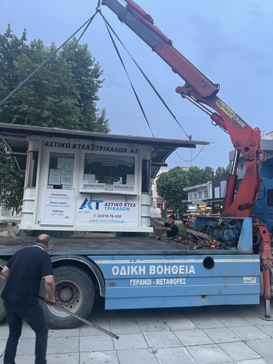 Το πήραν με… γερανό! Μεταφέρθηκε το εκδοτήριο εισιτηρίων του ΑΣΤΙΚΟΥ ΚΤΕΛ