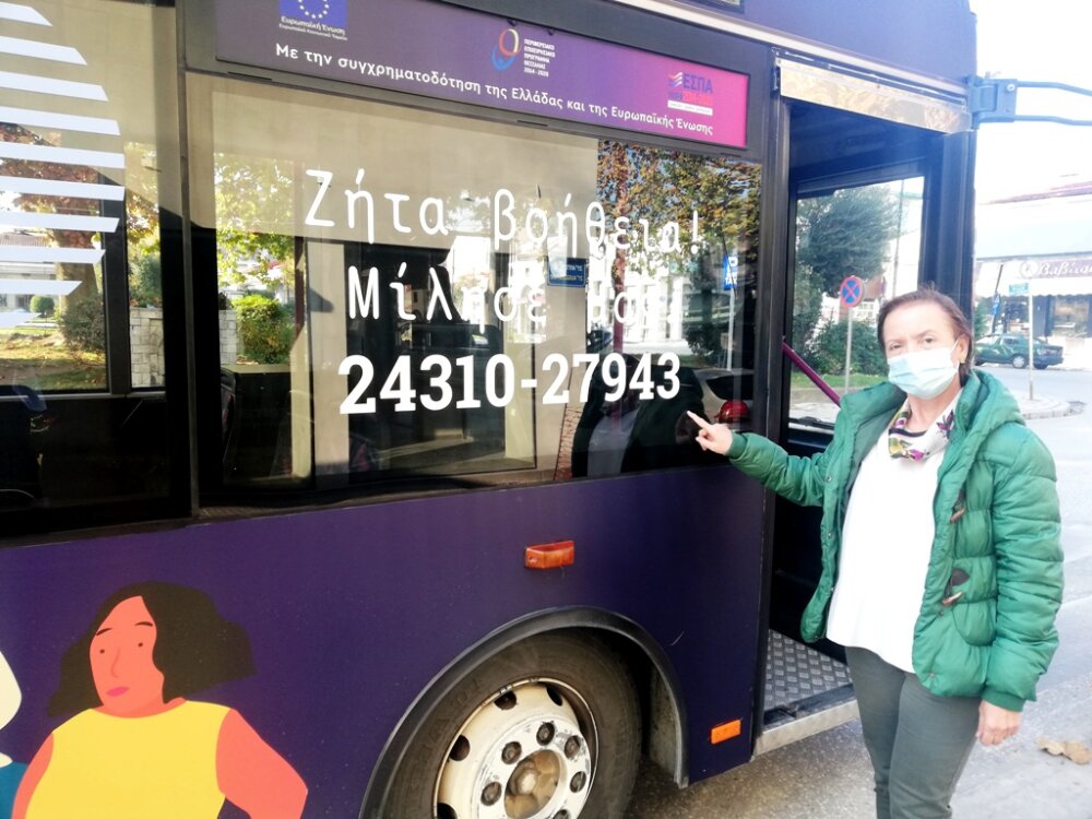 Για τον λόγο αυτόν, σε συνεργασία με τοη διοίκηση του Αστικού ΚΕΤΛ, ένα λεωφορείο για το επόμενο εξάμηνο βάφτηκε με το λογότυπο και το γνωστό, πλέον σύνθημα «Δεν είσαι η Μόνη, Δεν είσαι Μόνη».