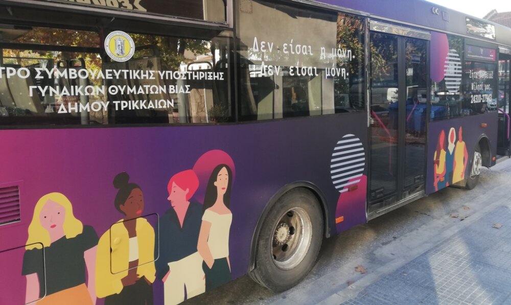 Για τον λόγο αυτόν, σε συνεργασία με τοη διοίκηση του Αστικού ΚΕΤΛ, ένα λεωφορείο για το επόμενο εξάμηνο βάφτηκε με το λογότυπο και το γνωστό, πλέον σύνθημα «Δεν είσαι η Μόνη, Δεν είσαι Μόνη».