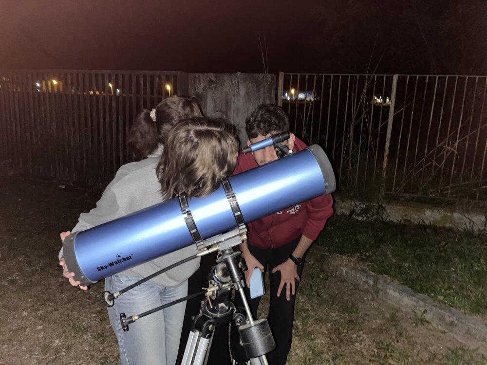 Αυλή μουσικού σχολείου Τρικάλων, λίγο μετά τη δύση του ήλιου την Τρίτη 9 Απριλίου. Οι εραστές του ουρανού πιστοί στο ραντεβού τους. Μαθητές και μαθήτριες που συμμετέχουν στο πρόγραμμα «Γνωρίζοντας τη διαστημική μας γειτονιά» (που εκπονείται στο σχολείο μας με υπεύθυνους καθηγητές τους κ. Θεοφάνη Καρούτη, Γιώργο Μπομπόκα και Γιώργο Παππά) προσέρχονται στο σχολείο καθοδηγούμενοι από τη δίψα τους για γνώση (φυσικά η ομάδα είναι διευρυμένη, εξ άλλου τα παιδιά δεν θα μπορούσαν να έρθουν στο σχολείο μόνα τους!). Η συνάντηση ήταν αρχικά προγραμματισμένη για την Κυριακή, αλλά οι καιρικές συνθήκες υπόδειξαν την προσωρινή αναβολή της. Τώρα όμως ο καιρός είναι σύμμαχος, η ευκαιρία δεν γίνεται να πάει χαμένη, ένας πεντακάθαρος ουρανός γεμάτος κάθε λογής αστέρια μας περιμένει και ο κ. Καρούτης αναλαμβάνει την ξενάγηση.