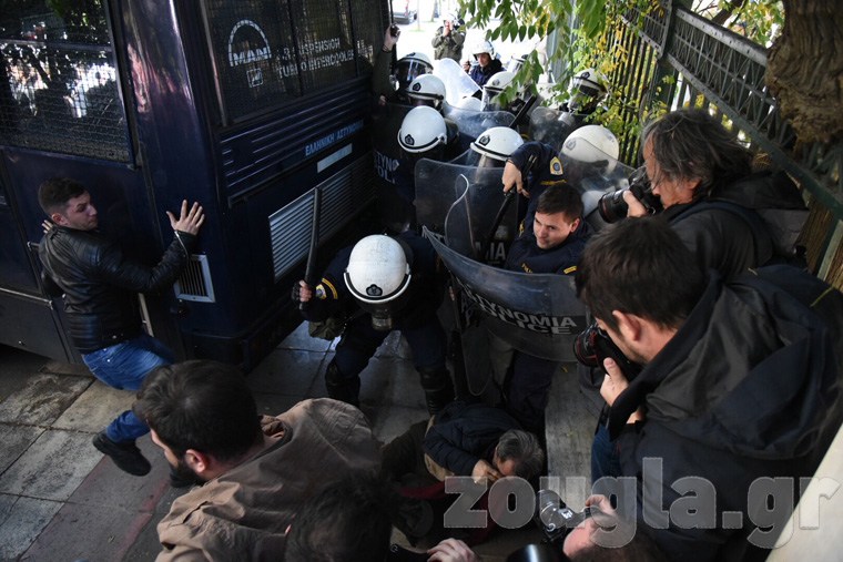 Εκεί όμως τους περίμενε διμοιρία των ΜΑΤ και τους έκοψε τον δρόμο. Αν και αρχικά η κατάσταση ήταν σχετικά ήρεμη, στη συνέχεια άναψαν τα αίματα και φοιτητές και ΜΑΤ ήρθαν στα χέρια.
