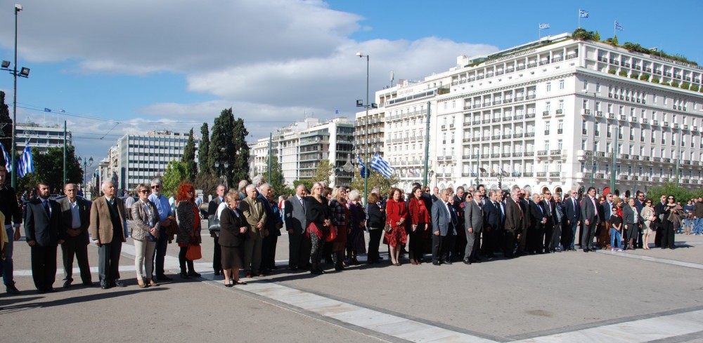 Στεφάνια στο μνημείο του Αγνώστου Στρατιώτη κατέθεσαν οι κ.κ.: Στέφανος Κούτρας, πρόεδρος της Πανθεσαλλικής Στέγης, Απόστολος Καλογιάννης, δήμαρχος Λαρισαίων, Μαρία Χρηστάκη, Περιφερειακή Σύμβουλος Κεντρικού Τομέα Περιφέρειας Αττικής, εκ μέρους της Περιφέρειας Αττικής και Άννα Βαγενά, βουλευτής ΣΥΡΙΖΑ Λάρισας, εκπροσωπώντας τον Πρωθυπουργό κ. Αλέξη Τσίπρα και την Ελληνική Κυβέρνηση. Η εκδήλωση έκλεισε, επίσημα, με σιγή ενός λεπτού και ανάκρουση του Εθνικού Ύμνου.