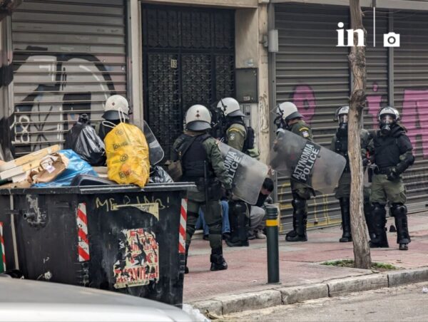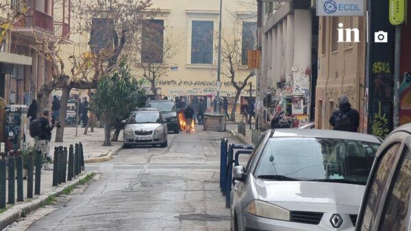 Μετά τα επεισόδια ομάδα ατόμων συγκεντρώθηκε γύρω από τον χώρο του Πολυτεχνείου έχοντας βάλει φωτιά σε κάδους.