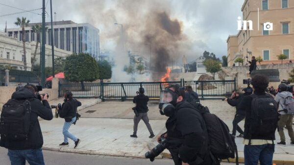 Επεισόδια σημειώθηκαν λίγο μετά τις δύο το μεσημέρι στο Σύνταγμα στο πλαίσιο της 24ωρης απεργίας που κήρυξαν η ΑΔΕΔΥ, το Εργατικό Κέντρο Αθήνας, το ΠΑΜΕ, Εργατικά Κέντρα και Ομοσπονδίες του ιδιωτικού και δημόσιου τομέα, με αφορμή τη συμπλήρωση ενός χρόνου από το σιδηροδρομικό δυστύχημα στα Τέμπη που κόστισε τη ζωή σε 57 ανθρώπους.
