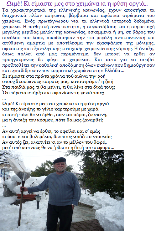 Κι είμαστε μες στο χειμώνα, η φύση αγκομαχά