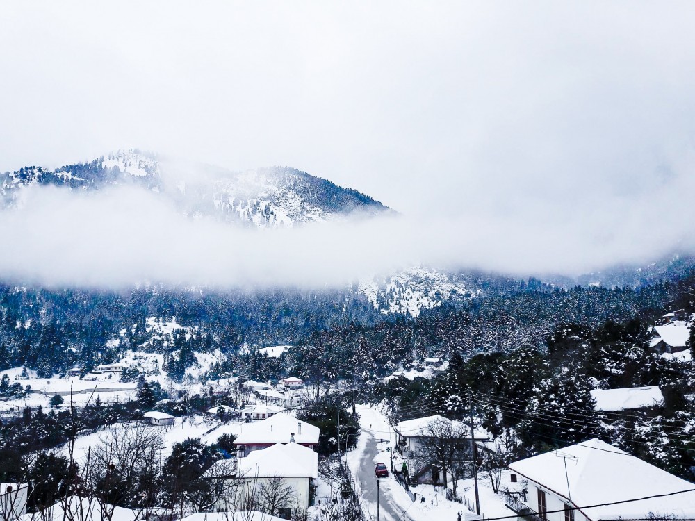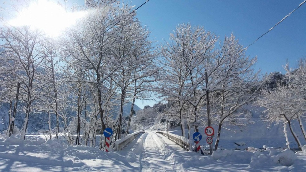 Αλπικό τοπίο θύμιζε η Κοιλάδα του Αχελώου ντυμένη στα λευκά μετά τις πρόσφατες χιονοπτώσεις.