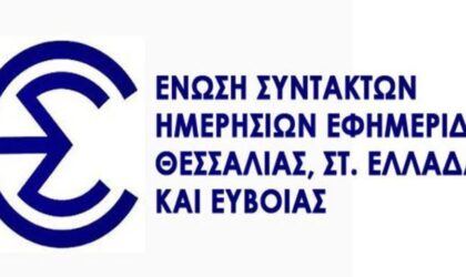 Το Διοικητικό Συμβούλιο της Ένωσης Συντακτών Ημερησίων Εφημερίδων Θεσσαλίας, Στερεάς Ελλάδας και Ευβοίας εκφράζει την έκπληξη και την πλήρη διαφωνία...